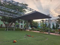- a) Phần khung: Khung bạt mái xếp được làm từ nhôm, sắt, inox tùy theo thiết kế và yêu cầu của khách hàng dựa vào diện tích cần lắp đặt. Và thường khung inox có giá thành cao hơn so với khung sắt.